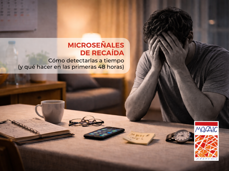En Mosaic repetimos una idea que puede cambiar un destino: la recaída casi nunca empieza de golpe. No suele llegar como un “todo o nada” repentino, sino como una cadena de pequeños cambios que, si no se nombran, se normalizan. Y cuando se normalizan, se vuelven costumbre. Por eso hablar de microseñales no es vivir con miedo: es hacer prevención inteligente.